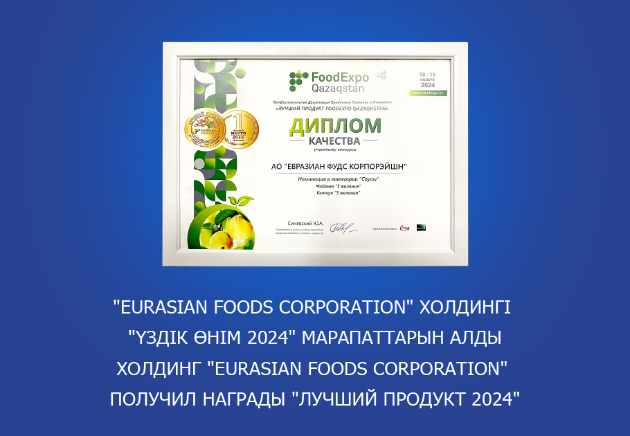 АО «Eurasian Foods» стало победителем в номинации «Крупный налогоплательщик, состоящий на мониторинге»