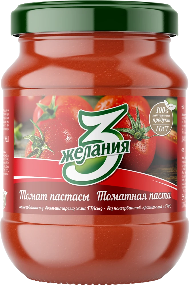 Приготовлена путем уваривания спелых протертых томатов по стандартам ГОСТ. Благодаря современным технологиям, томатная паста сохраняет все полезные витамины, микроэлементы и ценные природные компоненты, которые содержатся в томатах. Не содержит крахмал, овощных или фруктовых пюре и других пищевых добавок, а также красителей и ароматизаторов.
