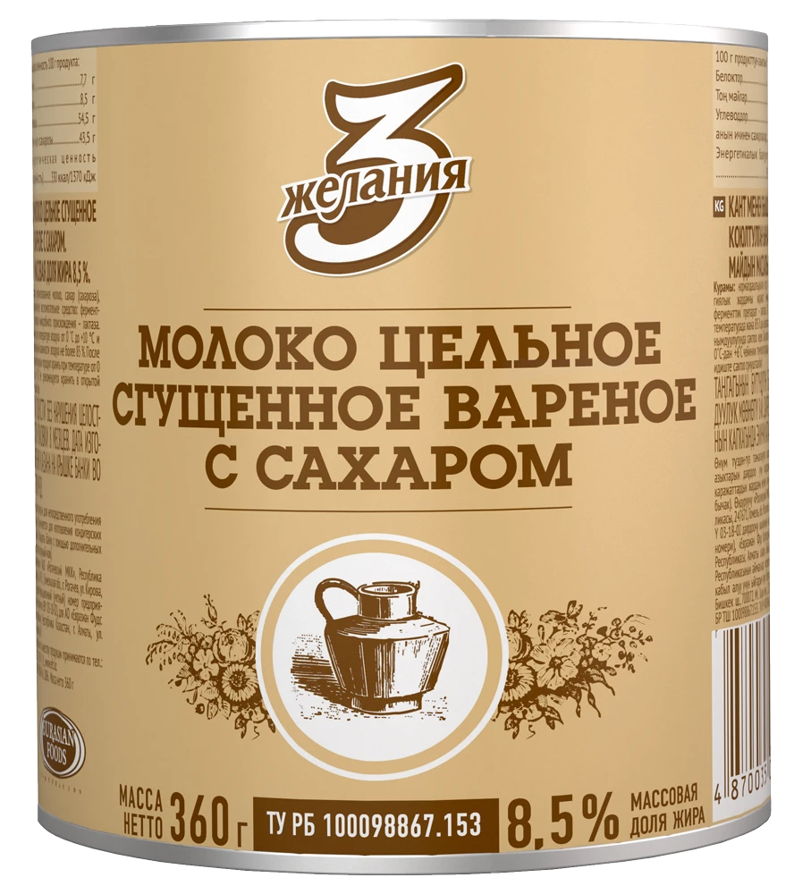 Молоко цельное сгущённое варёное с сахаром