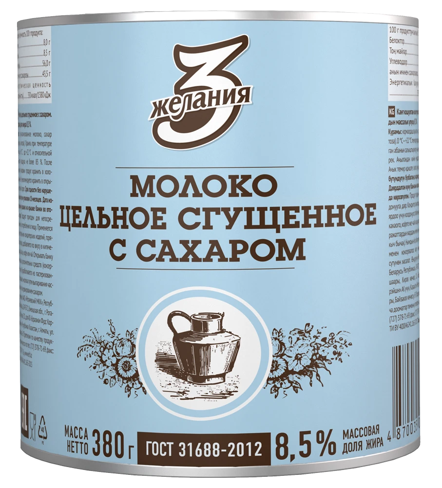 Молоко цельное сгущённое с сахаром