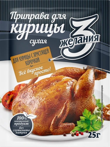 Пикантная смесь из натуральных специй и овощей с добавлением чеснока и перца чили прекрасно дополнит вкус сочной курочки с хрустящей корочкой. А дуэт паприки с кориандром добавят изюминку и неповторимый аромат.  Не содержит глутамата натрия и ГМО.