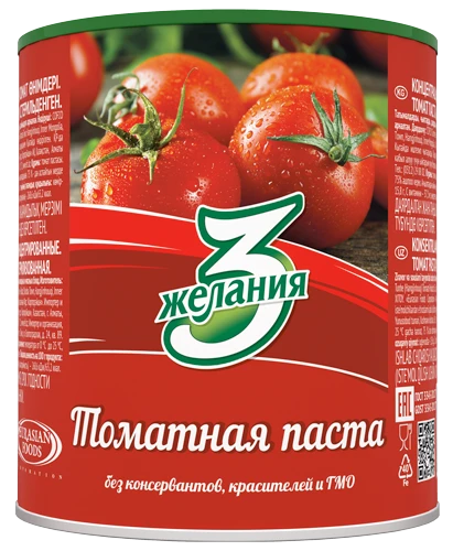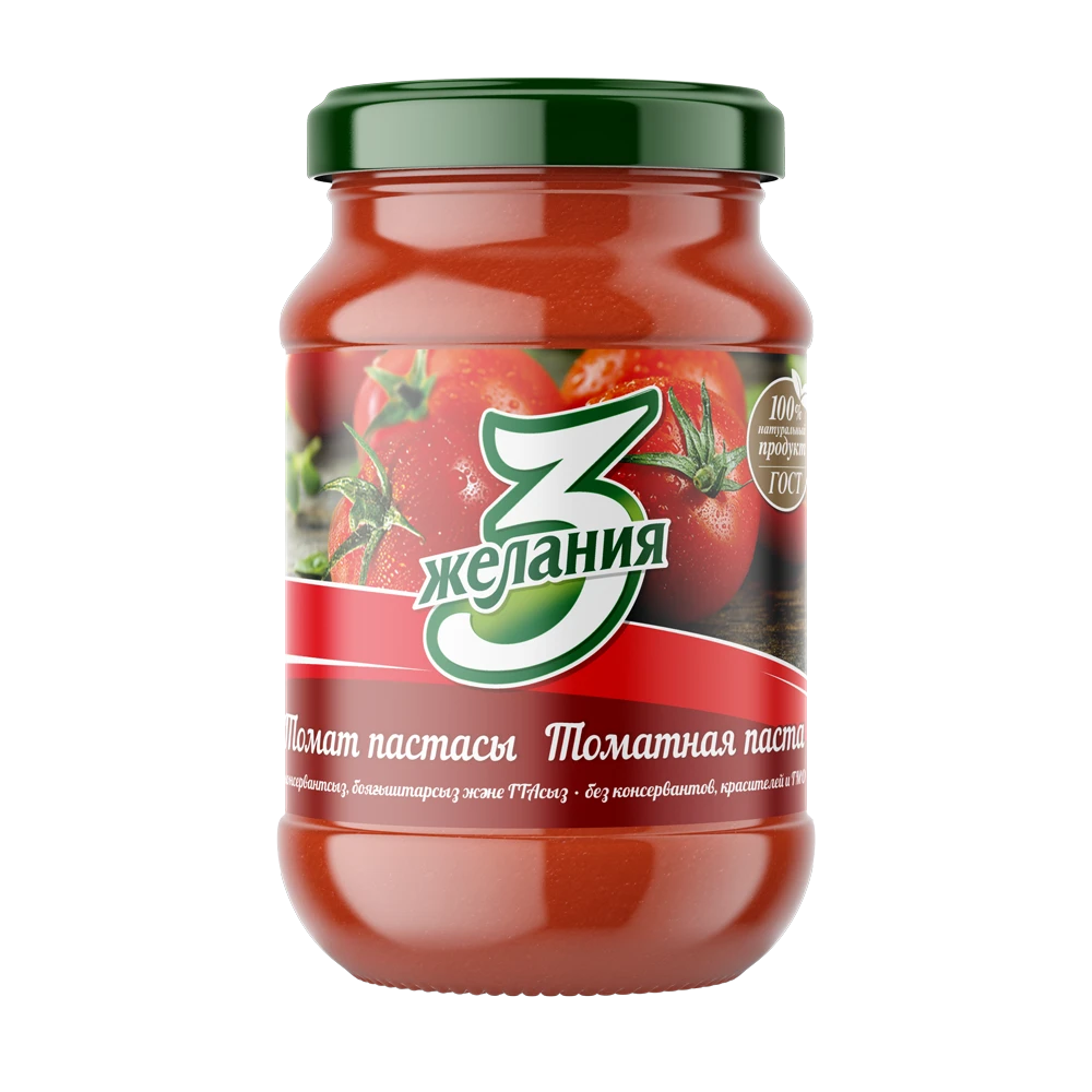 Приготовлена путем уваривания спелых протертых томатов по стандартам ГОСТ. Благодаря современным технологиям, томатная паста сохраняет все полезные витамины, микроэлементы и ценные природные компоненты, которые содержатся в томатах. Не содержит крахмал, овощных или фруктовых пюре и других пищевых добавок, а также красителей и ароматизаторов.