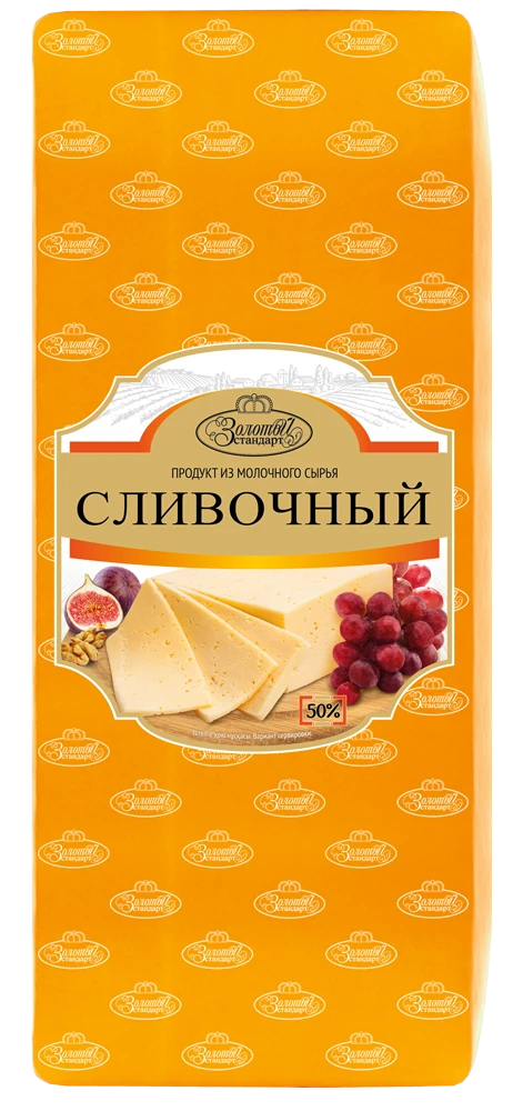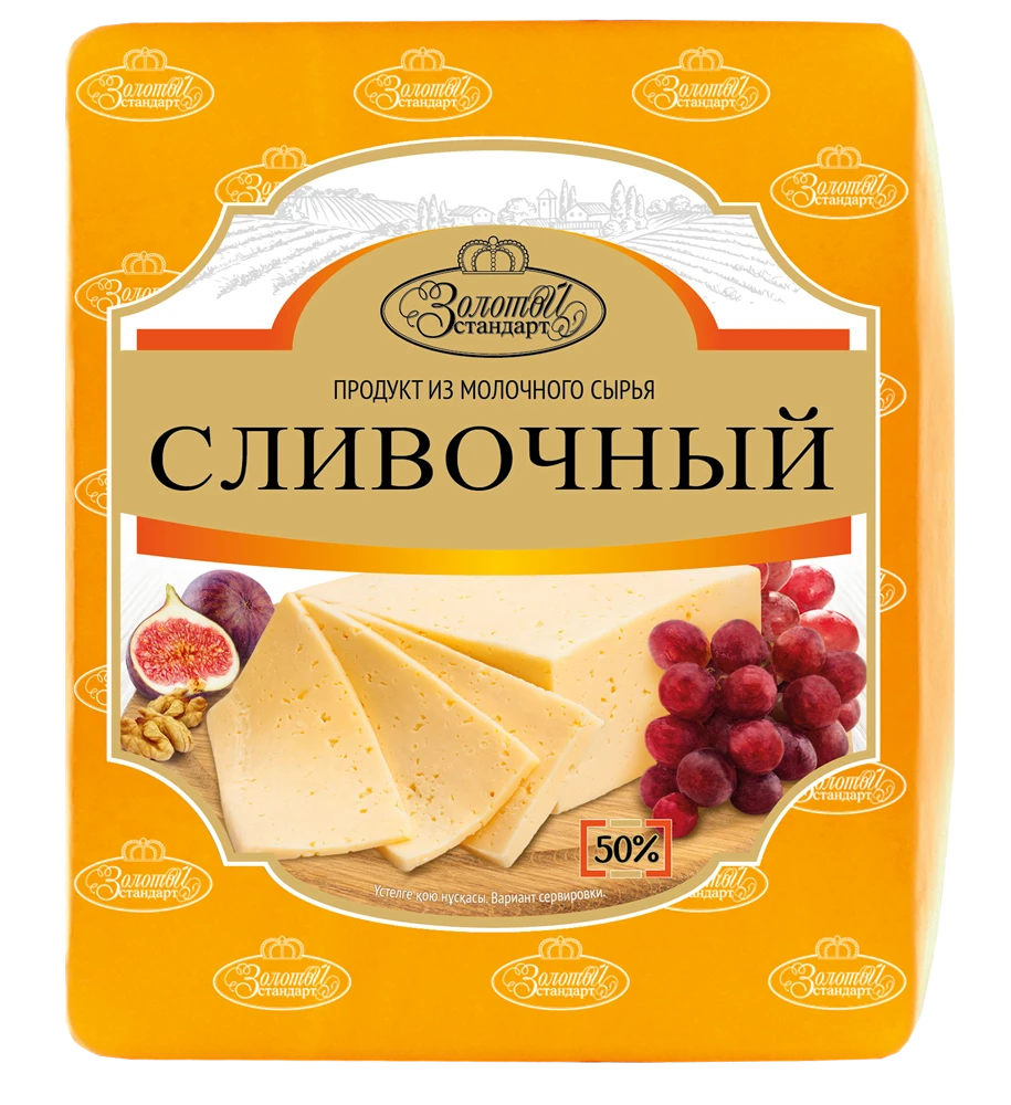 Жирность 50%. Продукт обладает нежным вкусом и ярким ароматом сливок. Идеален для бутербродов и выпечки, придаёт лёгкие приятные сырные нотки холодным и горячим закускам.