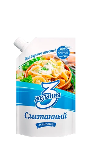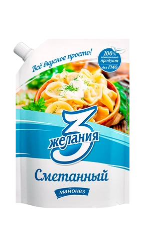 Жирность 50,5%. Обладает нежной консистенцией и насыщенным сметанным вкусом. Идеально подходит для заправки салатов и супов, а также для приготовления закусок и бутербродов. Не содержит ГМО.