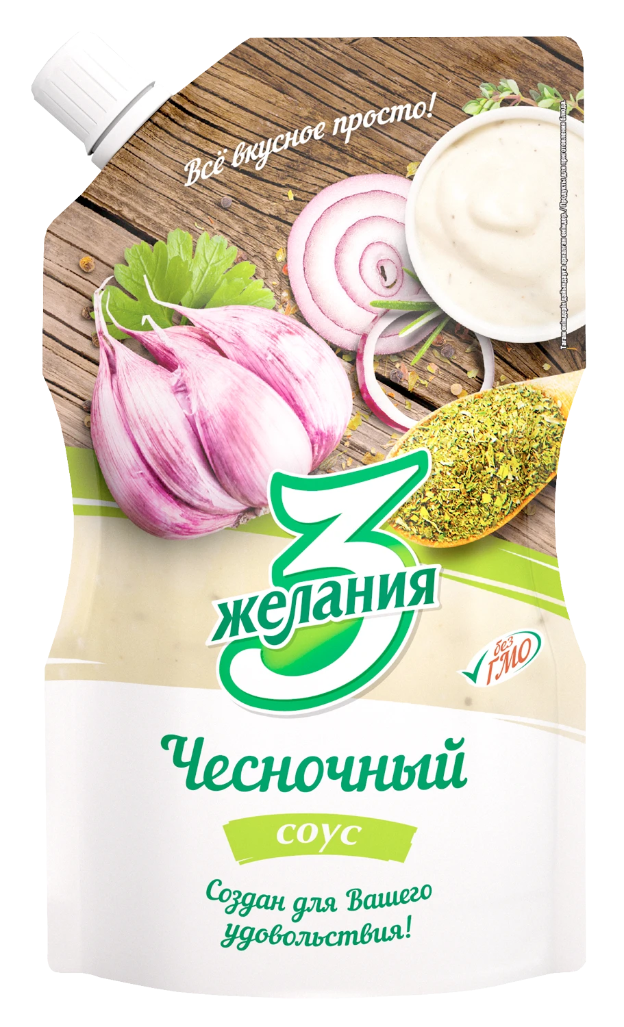 Соус на основе растительных масел «Чесночный» с жирностью 40%. Приготовлен по уникальной рецептуре с добавлением кусочков лука, чеснока и пряностей, способен по-новому раскрыть вкус мясных и овощных блюд. Обладает пикантно-острым вкусом и нежной консистенцией. А розмарин, укроп и тимьян придают соусу изысканный и неповторимый аромат. Не содержит ГМО.
