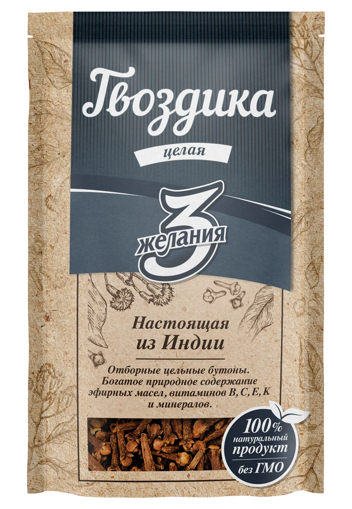 Только цельные бутоны из Индонезии. Отличается высоким содержанием эфирных масел, ярко выраженным вкусом и ароматом. Фольгированная упаковка позволяет сохранить качество продукта.  Соответствует требованиям ГОСТ. Не содержит ГМО.